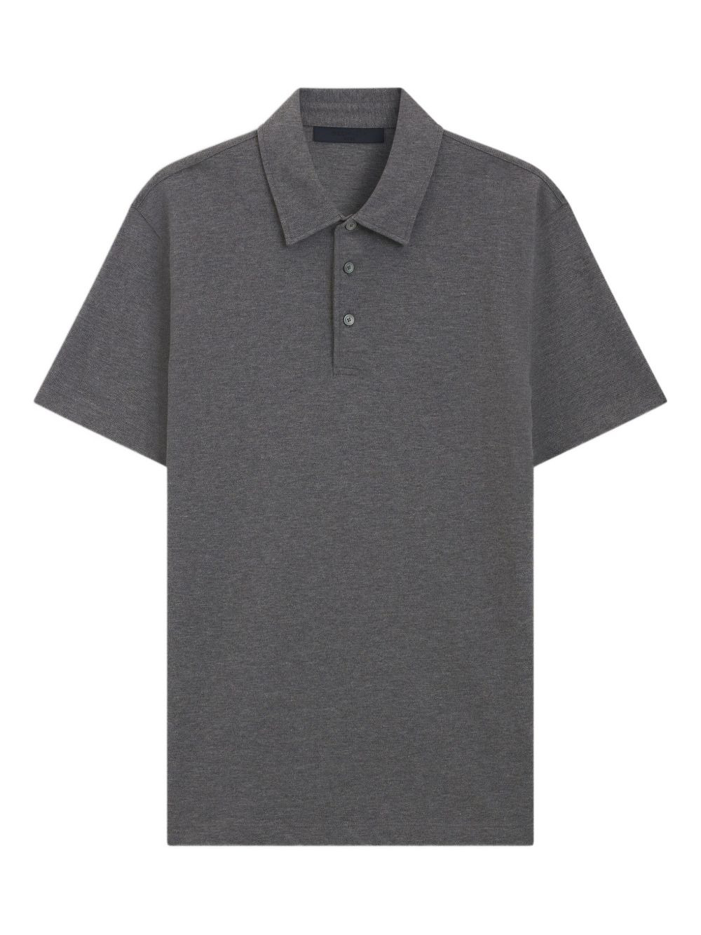 three-button polo shirt Highlights - Dark grey - Cotton-silk blend - Short sleeves - Three-button placket - Classic collar Imported Composition Cotton 90%, Silk 10% Washing instructions Read Manufacturer Guidelines