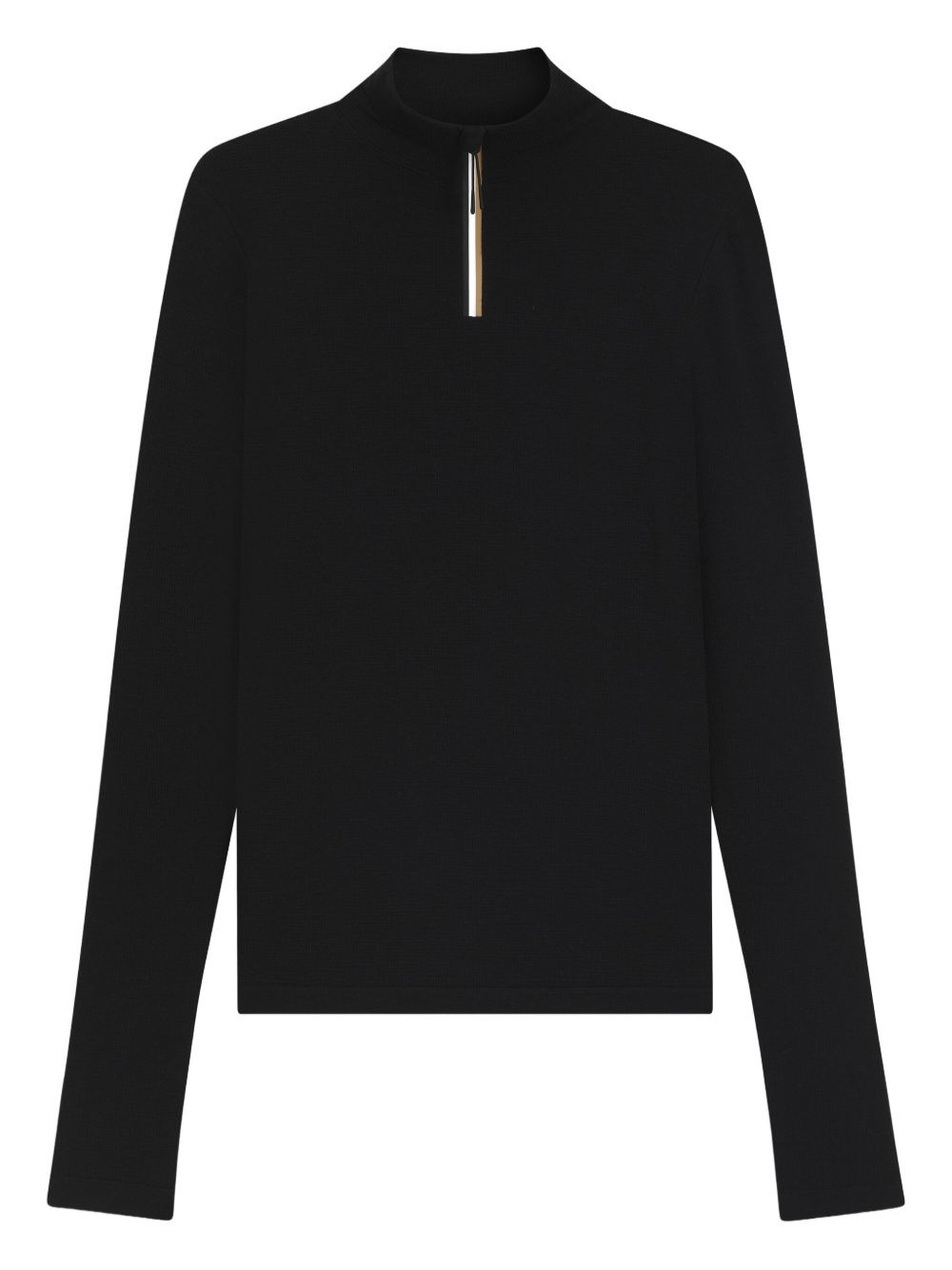 turtleneck half-zip sweater Highlights - Black - Wool-blend - Turtleneck - Long sleeves - Half-zip fastening Imported Composition Wool 57%, Polyamide 40%, Fabric 3% Washing instructions Read Manufacturer Guidelines