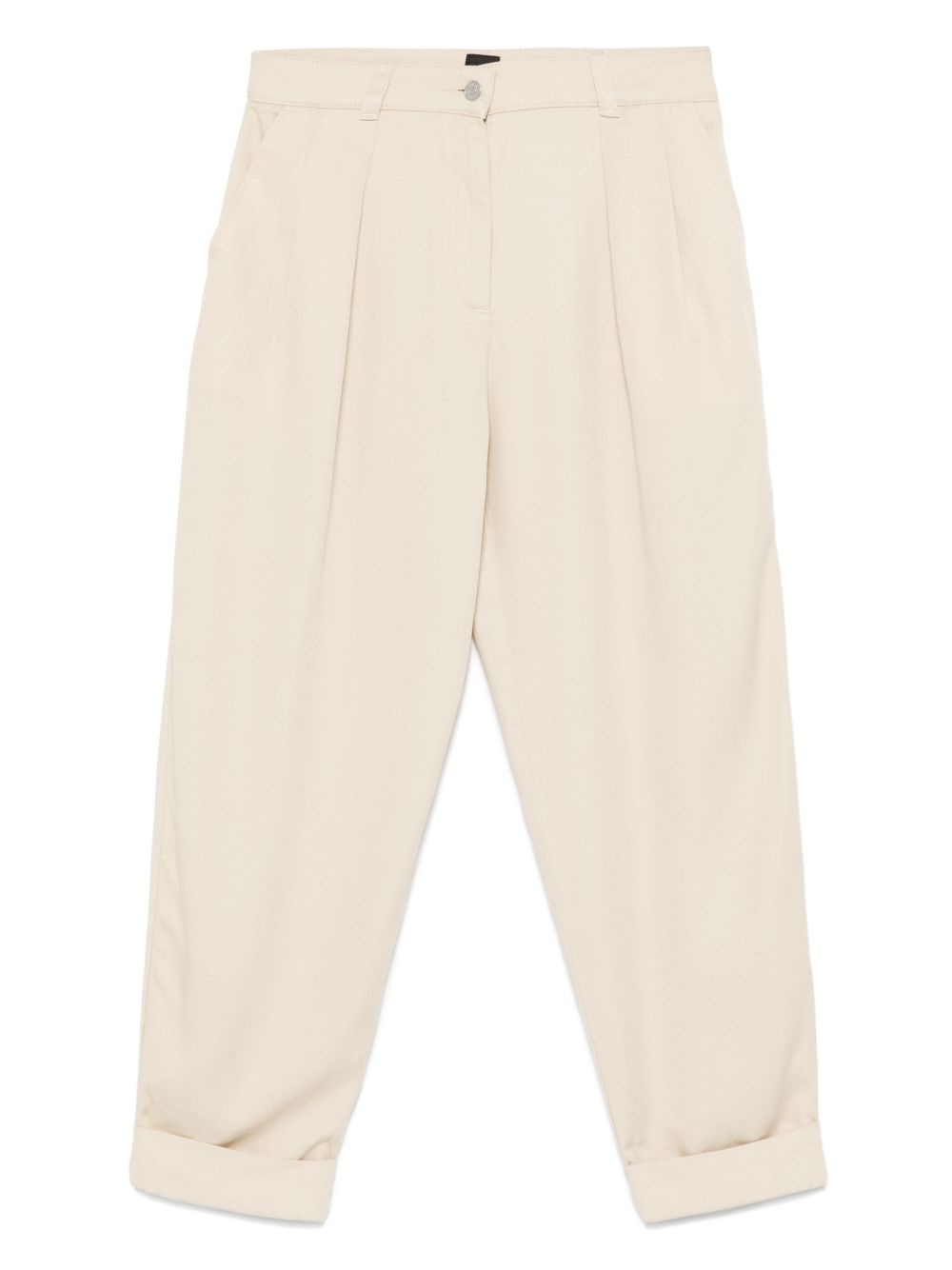 twill trousers Highlights - Light beige - Front button and zip fastening - Belt loops - Two side slash pockets - Two rear patch pockets Imported Composition Outer: Lyocell 100% Lining: Polyester 65%, Cotton 35%