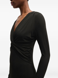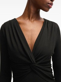 twist-detail long-sleeve midi dress Highlights - Black - V-neck - Twist detail - Long sleeves - Fitted waistline - A-line skirt Imported Composition Viscose 91%, Elastane 9% Washing instructions Read Manufacturer Guidelines