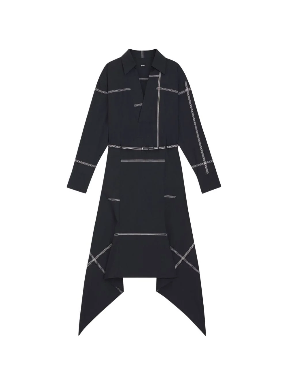V-neck belted midi dress Highlights - Navy blue - Check pattern - Long sleeves - V-neck - Cotton Imported Composition Cotton 100% Washing instructions Read Manufacturer Guidelines