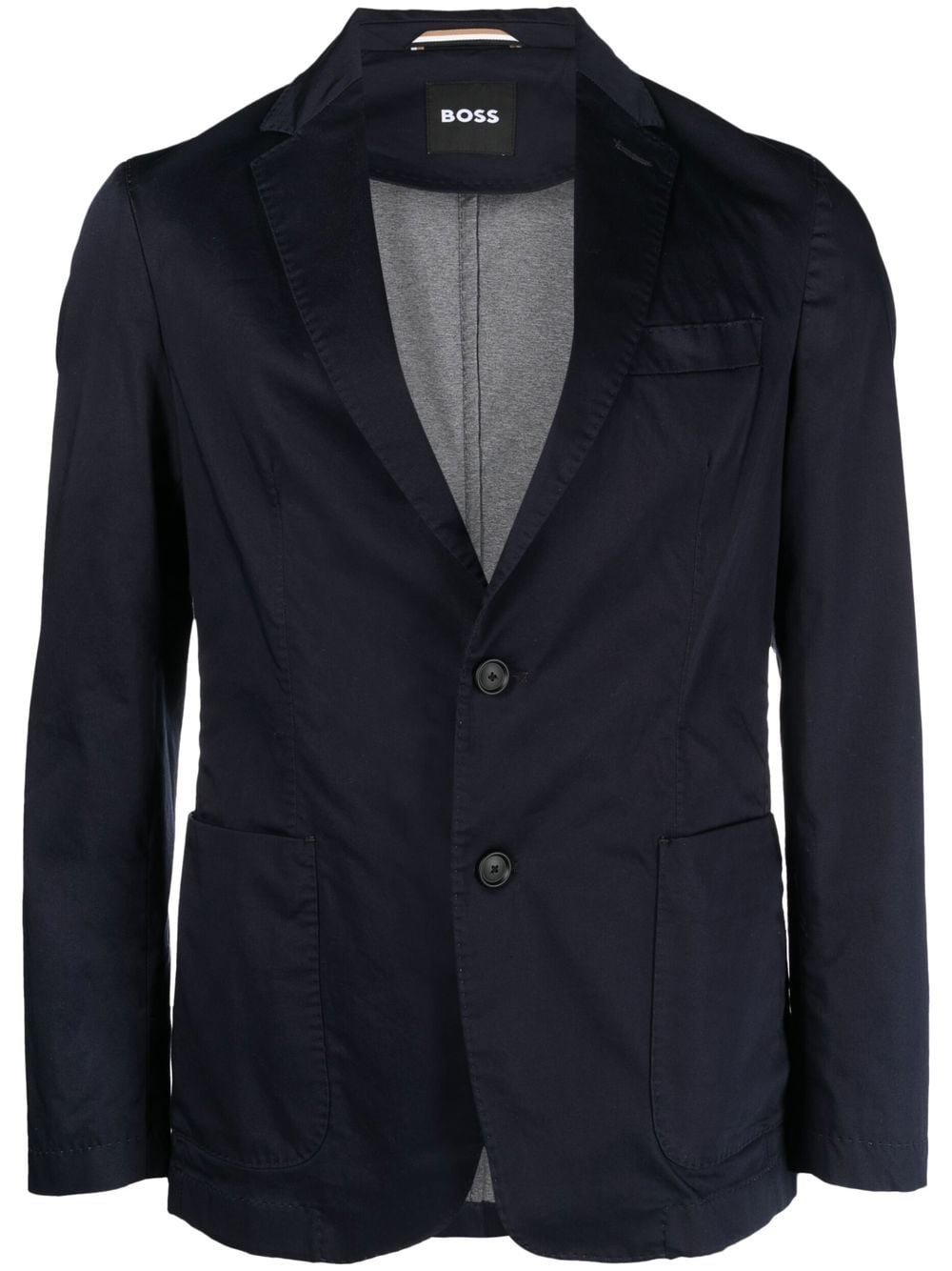 V-neck classic blazer navy blue cotton blend plunging V-neck notched lapels front button fastening two front patch pockets chest patch pocket English rear vents buttoned-cuff sleeves straight hem Imported Composition Outer: Cotton 63%, Polyamide 17%, Polyester 16%, Elastane 4% Lining: Polyester 100% SIZE & FIT Model measurements Height 6 ft 0 in(1.84 m) Bust/Chest 36.22 in(92 cm) Hips 35.43 in(90 cm) Waist 26.77 in(68 cm) FittingInformation Designed for a slim fit, offering a comfortable fit that sits just away from the body The vented hem offers movement at the rear Made from a lightweight stretch fabric, this piece offers elasticity and flexibility when worn This piece fits true to size – take your usual size Washing instructions Dry Clean Only