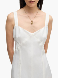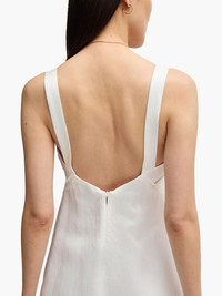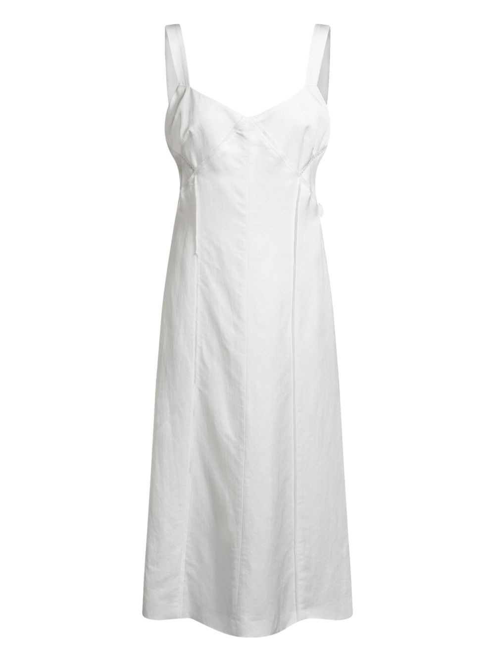 V-neck midi dress Highlights - White - Concealed rear zip fastening - Sleeveless - Straight hem Imported Composition Viscose 59%, Linen/Flax 41% Washing instructions Read Manufacturer Guidelines