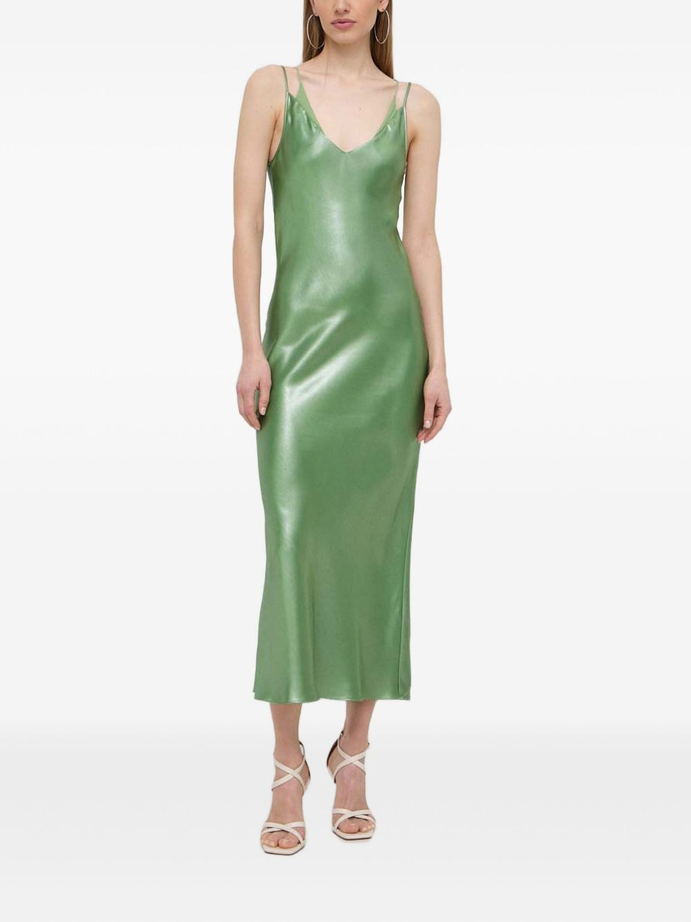V-neck midi slip dress Highlights - Light green - V-neck - Spaghetti straps Imported Composition Polyester 68%, Recycled Polyester 32% Washing instructions Read Manufacturer Guidelines