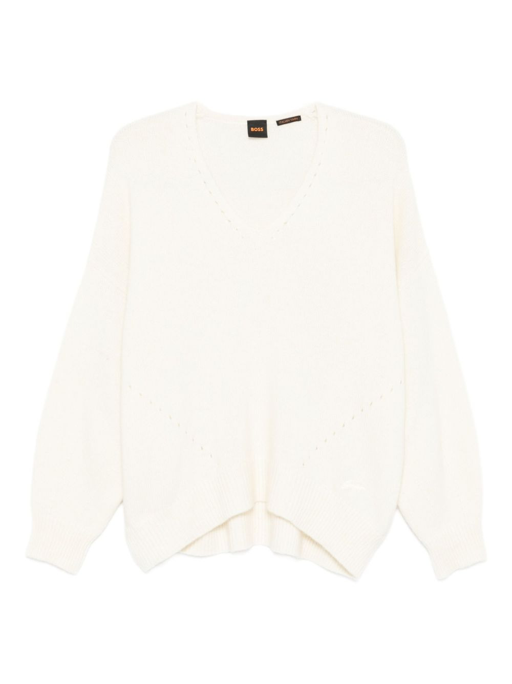 v-neck sweater Highlights - White - V-neck - Long sleeves - Straight hem Imported Composition Polyamide 44%, Alpaca 34%, Wool 22% Washing instructions Read Manufacturer Guidelines