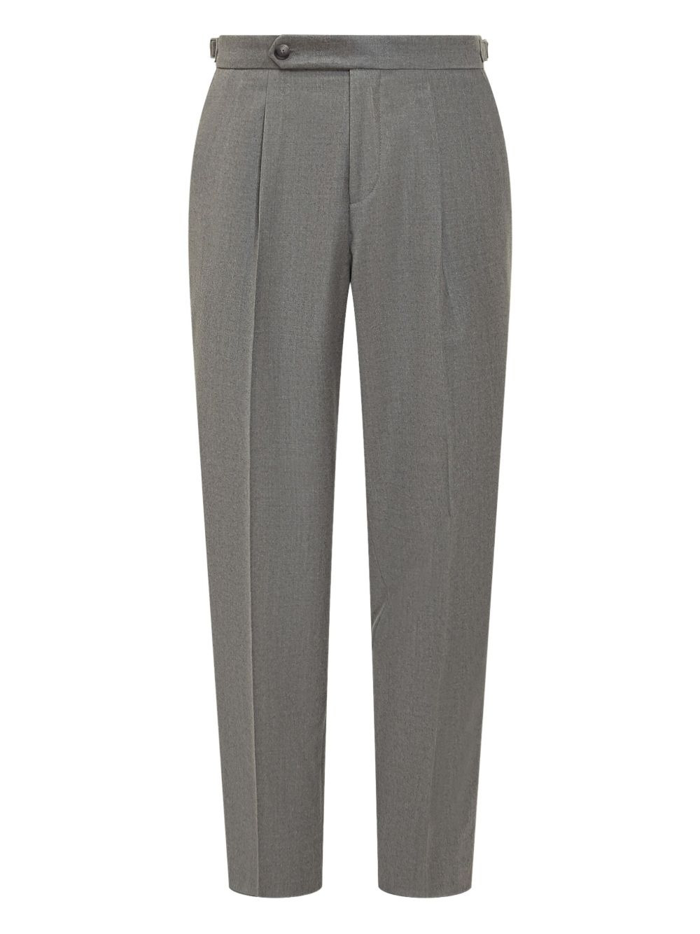 virgin wool trousers Highlights - Grey - Pleat detail - Belt loops - Button fastening - Back welt pockets - Adjustable waist tabs Imported Composition Virgin Wool 100% Washing instructions Read Manufacturer Guidelines