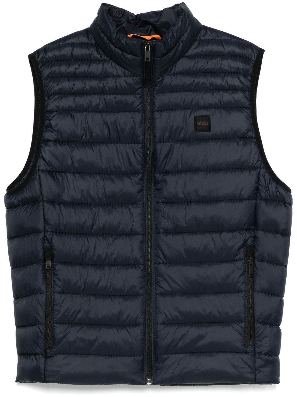 water-repellent gilet Highlights - Midnight blue - Front zip fastening - Two side zip-fastening pockets - Quilted - Rubberised logo detail Imported Composition Lining: Polyester 100% Outer: Recycled Polyamide 100% SIZE & FIT Model measurements Height 6 ft 2 in(1.89 m) Bust/Chest 35.03 in(89 cm) Hips 38.18 in(97 cm) Waist 29.92 in(76 cm) FittingInformation Designed for a slim fit, offering a comfortable fit that sits just away from the body Made from a padded non-stretch fabric, giving it no natural elasticity