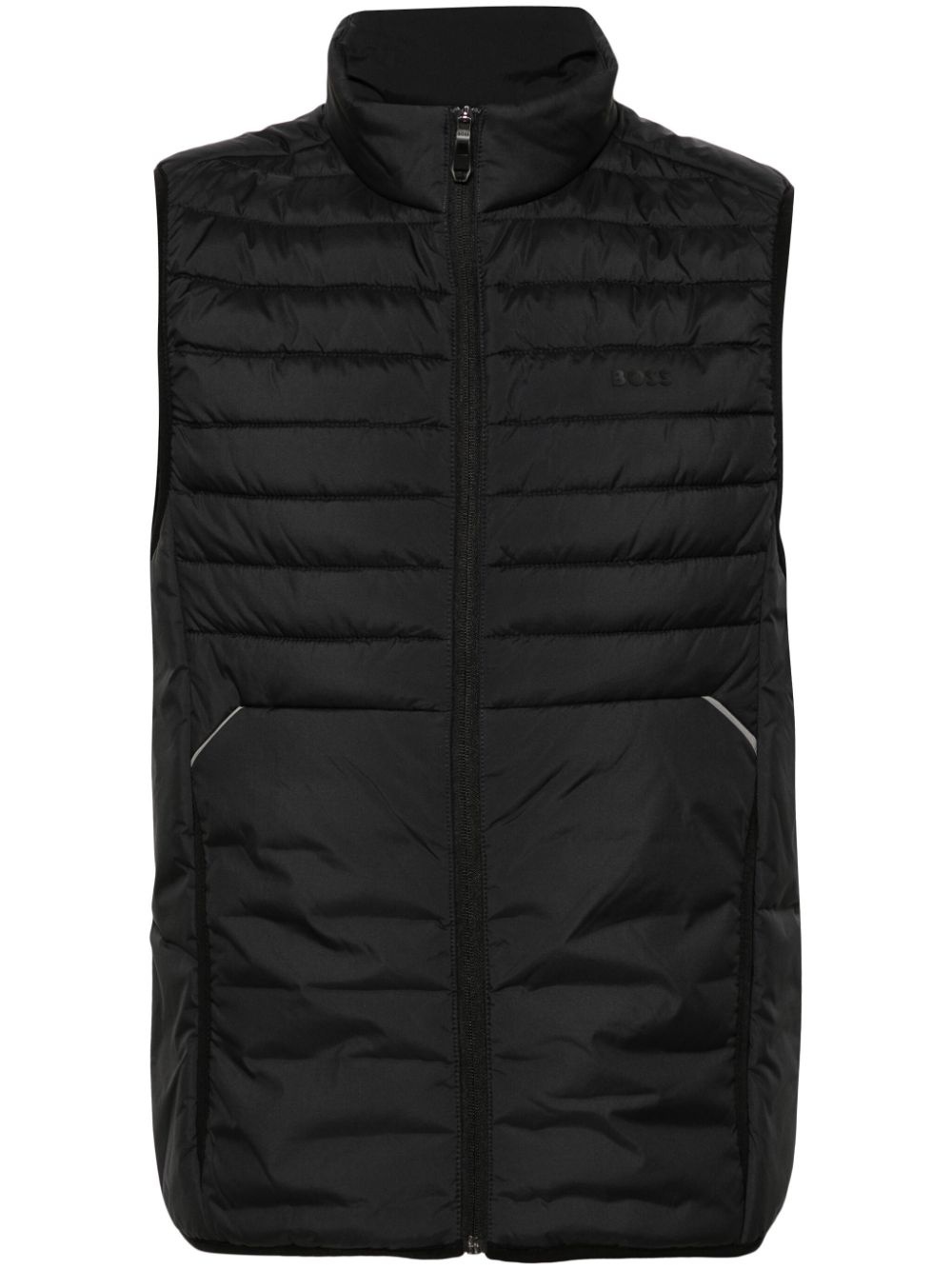 water-resistant gilet Highlights - Navy blue - Lightweight - Water-resistant - Insulated design - Quilted - Front zip fastening - Stand-up collar - Sleeveless - Rubberised logo detail - Two side inset pockets - Full lining - Straight hem Imported Composition Outer: Polyester 100% Lining: Polyester 100% SIZE & FIT Model measurements Height 6 ft 2 in(1.87 m) Bust/Chest 37.79 in(96 cm) Hips 37.79 in(96 cm) Waist 30.31 in(77 cm) FittingInformation Designed for a regular fit, allowing for a comfortably loose fit throughout the body Made from a padded non-stretch fabric, giving it no natural elasticity