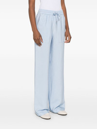 wide-leg twill trousers Highlights - Light blue - Elasticated drawstring waistband - Two diagonal pockets to the sides Imported Composition Viscose 58%, Lyocell 42% SIZE & FIT Model measurements Height 5 ft 11 in(1.8 m) Bust/Chest 31.49 in(80 cm) Hips 36.61 in(93 cm) Waist 24.4 in(62 cm) FittingInformation Designed for a straight-leg fit, these trousers allow for a close fit at the waist and an unrestricted, comfortable fit over the leg The internal drawstring at the hem allows for fitted preferences at the ankle Made from a midweight non-stretch fabric