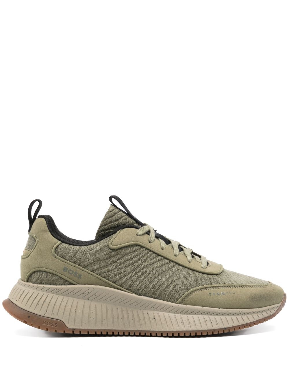 x ACBC speckled-effect sneakers Highlights - Olive green - Textured finish - Panelled design - Speckled-effect to the sole - Front lace-up fastening - Logo pull-tab at the heel - Embroidered logo to the rear - Logo print to the side - Pull-tab at the tongue - Round toe - Padded ankle - Branded insole - Mesh lining - Flat ribbed rubber sole Imported Composition Outer: Nylon 100% Sole: Rubber 100% SIZE & FIT Measurement HEEL 1.77 in(4.5 cm) Sole height 0.78 in(2 cm)