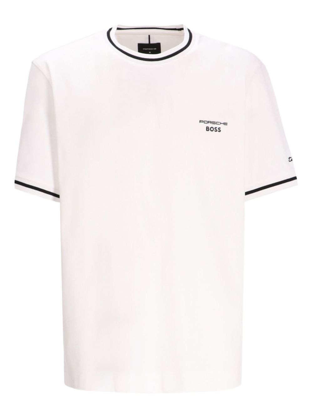 x Porsche contrast-trim T-shirt Highlights - White - Contrast ribbed crew neck - Logo print to the chest - Tonal stitching - Short sleeves Imported Composition Cotton 100% Washing instructions Read Manufacturer Guidelines