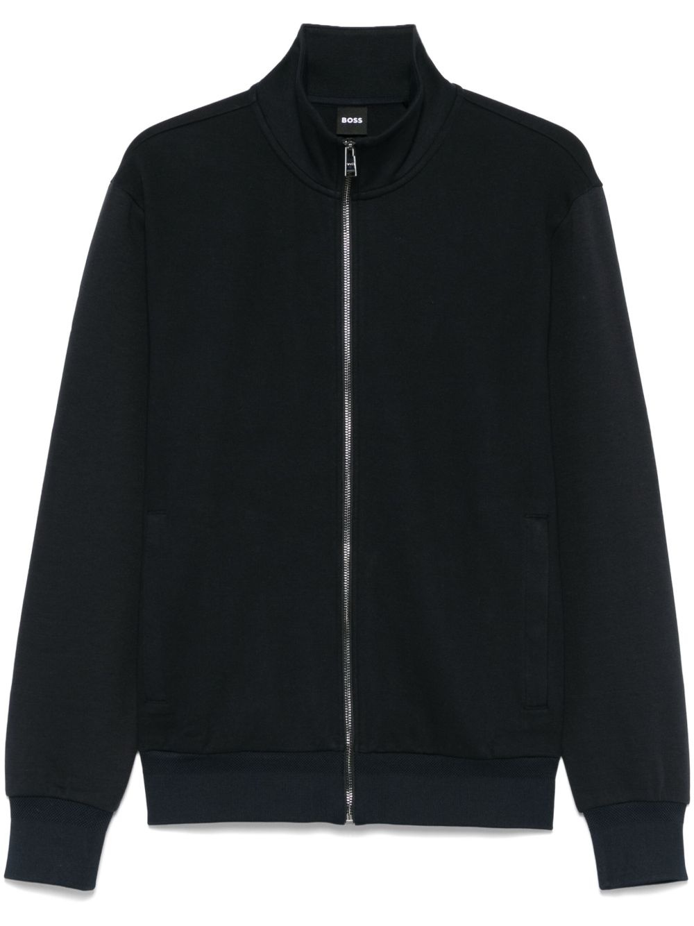 zip-fastening jacket Highlights - Midnight blue - Front zip fastening - Two side zip-fastening pockets - High neck - Long sleeves - Ribbed cuffs and hem Imported Composition Cotton 75%, Polyester 20%, Elastane 5% SIZE & FIT Model measurements Height 6 ft 2 in(1.87 m) Bust/Chest 36.41 in(92.5 cm) Hips 37 in(94 cm) Waist 29.52 in(75 cm) FittingInformation Designed for a regular fit, allowing for a comfortably loose fit throughout the body The ribbed hem offers a close, comfortable fit Made from a midweight stretch fabric, this piece offers elasticity and flexibility when worn Washing instructions Machine Wash