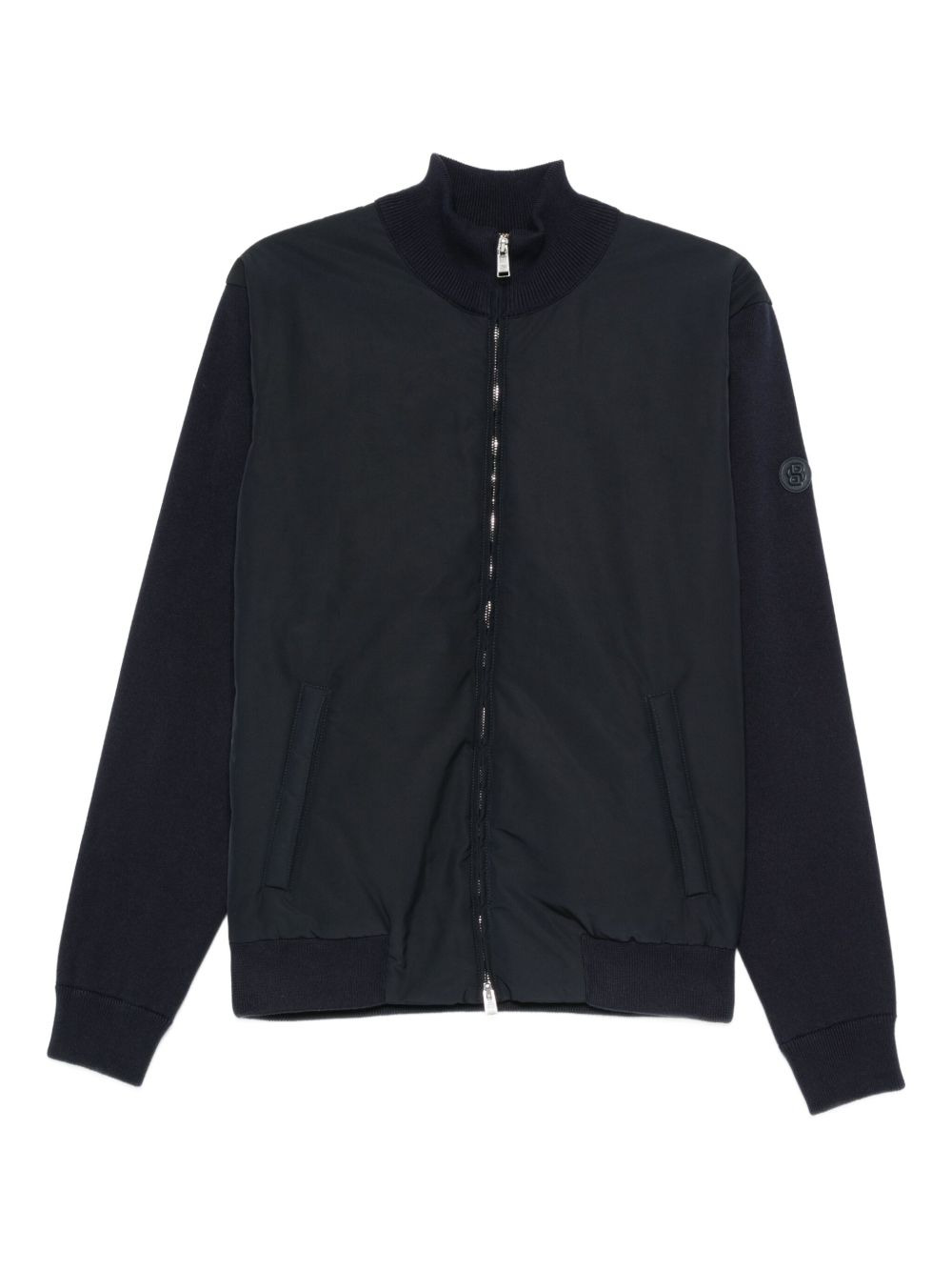zip-front cotton sweater Highlights - Dark blue - Cotton - Zip fastening - High neck - Panelled design - Embroidered logo Imported Composition Outer: Polyester 100%, Cotton 100% Lining: Recycled Polyester 100% Washing instructions Read Manufacturer Guidelines