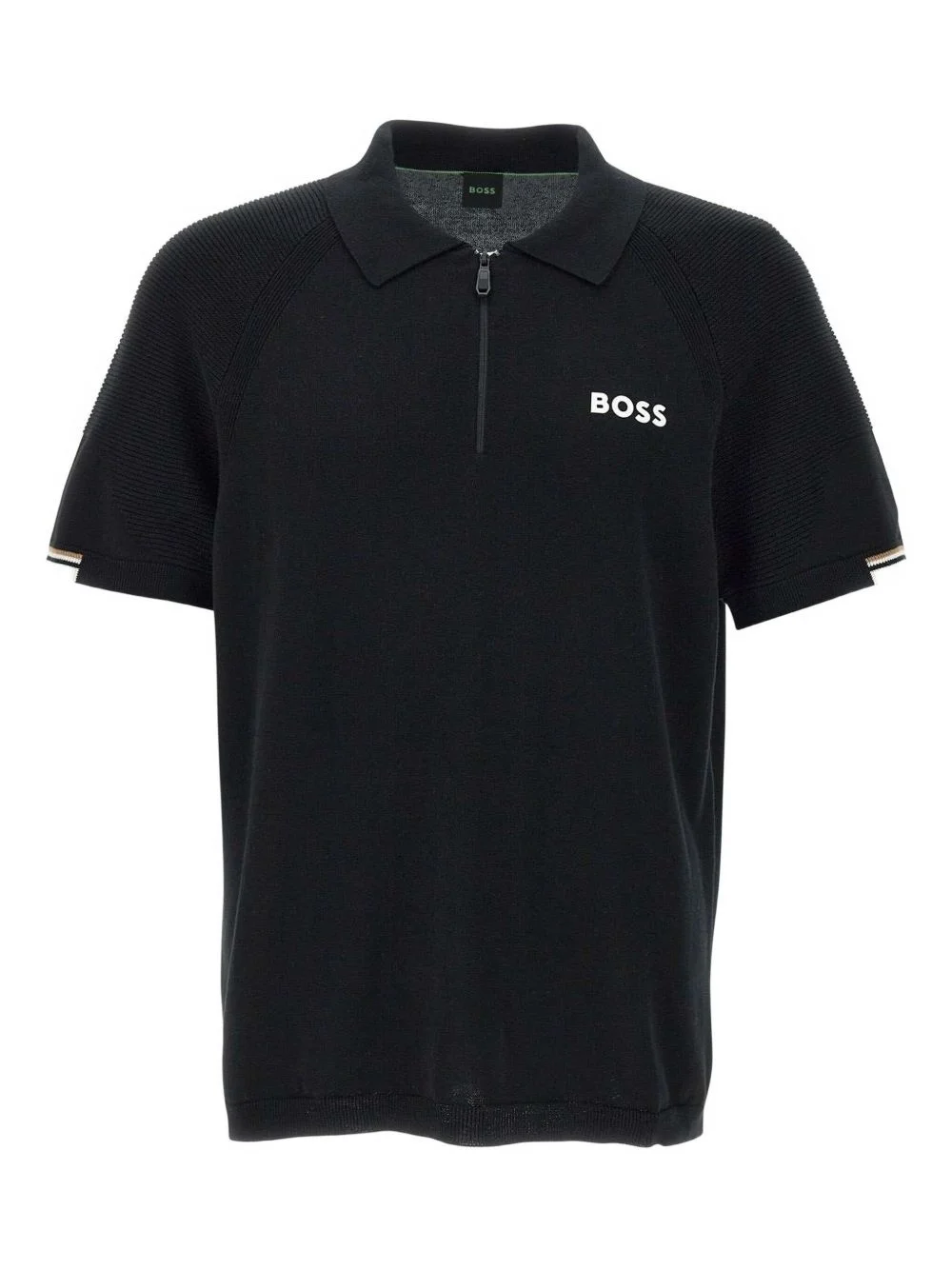 zip-neck polo shirt Highlights - Black - Zip fastening - Embroidered logo - Short sleeves Imported Composition Lyocell 50%, Cotton 50% Washing instructions Machine Wash