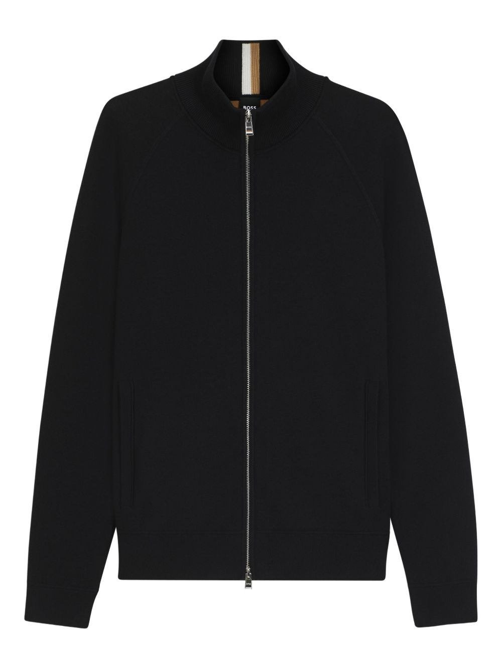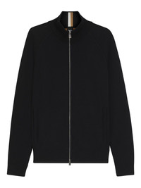 zip-up cardigan Highlights - Black - Front zip fastening - Stand-up collar - Long sleeves - Two side welt pockets Imported Composition Cotton 70%, Virgin Wool 30% Washing instructions Read Manufacturer Guidelines
