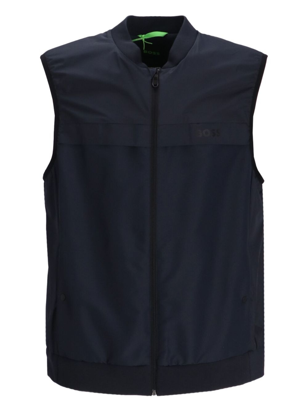 zip-up gilet Highlights - Navy blue - Front zip fastening - Two chest pockets - Ribbed band collar - Internal logo print Imported Composition Polyester 100% Washing instructions Read Manufacturer Guidelines