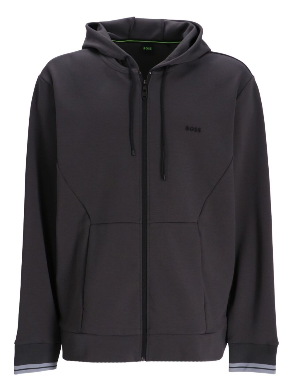 zip-up hooded sweatshirt Highlights - Dark grey - Logo at the chest - Front pockets - Adjustable drawstring hood Imported Composition Cotton 62%, Polyester 38% Washing instructions Read Manufacturer Guidelines
