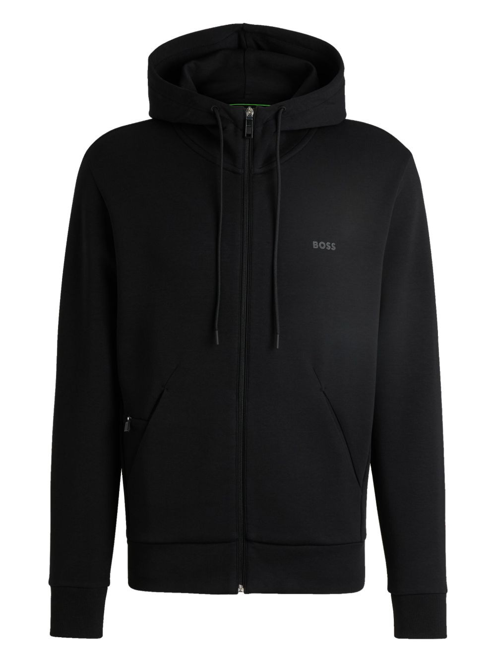 STRETCH-COTTON ZIP-UP HOODIE WITH LOGO PRINT