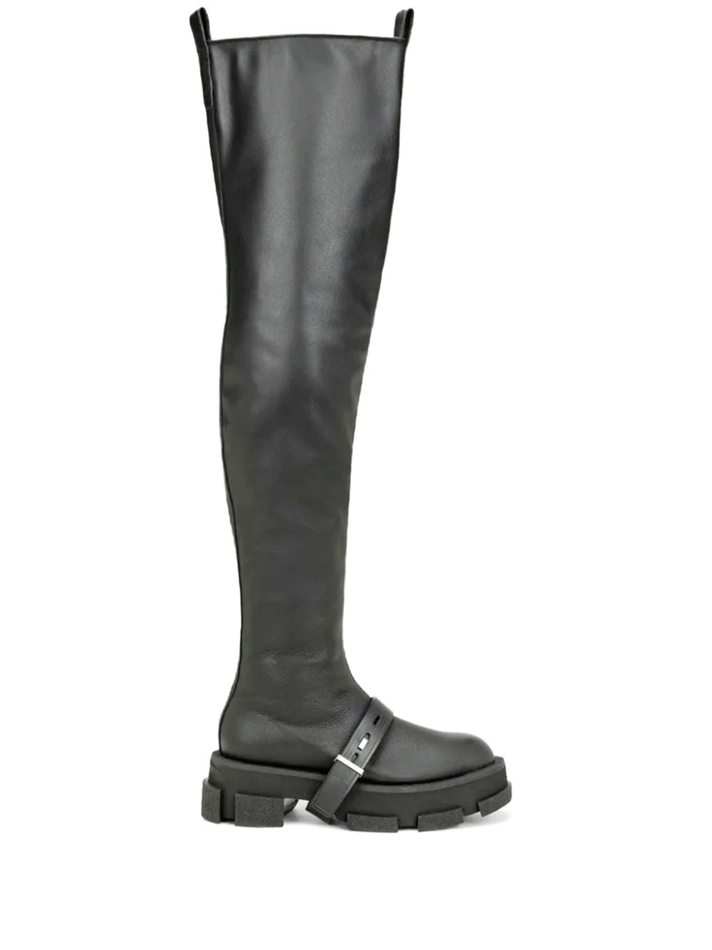 Gao thigh-high chunky boots Highlights - Black - Calf leather - Grained texture - Silver-tone hardware - Double pull-tab at the opening - Round toe - Pull-on style - Branded leather insole - Chunky rubber sole Imported Composition Outer: Calf Leather 80%, Leather 20% Lining: Leather 100%