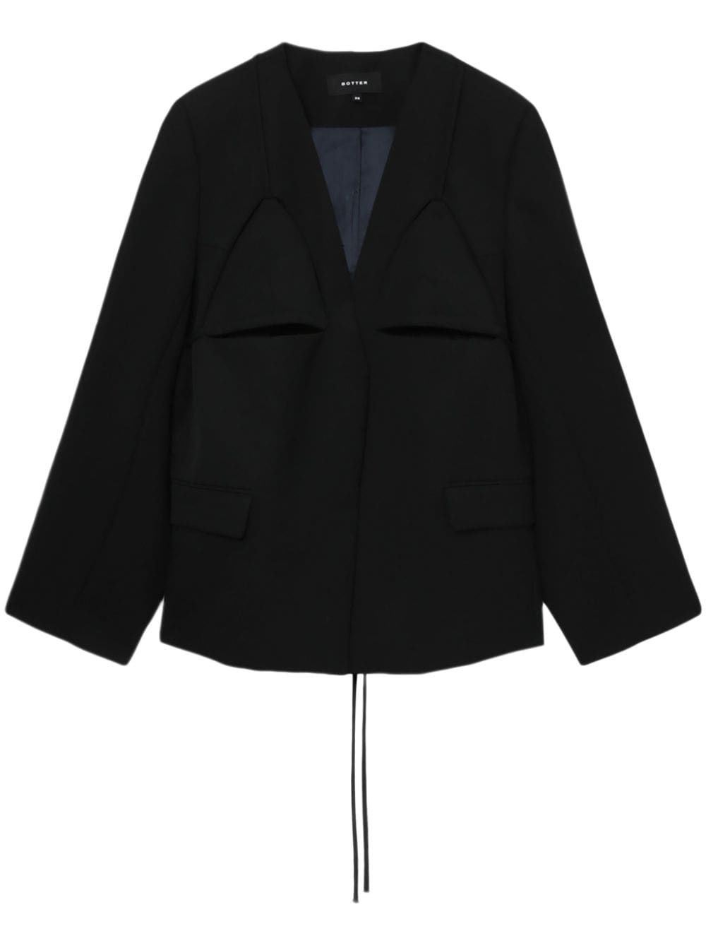 cut-out detailed blazer Highlights - Black - Virgin wool - V-neck - Concealed front fastening - Rear tie fastening - Cut-out detailing - Two side flap pockets - Long sleeves - Straight hem Imported Composition Virgin Wool 100%