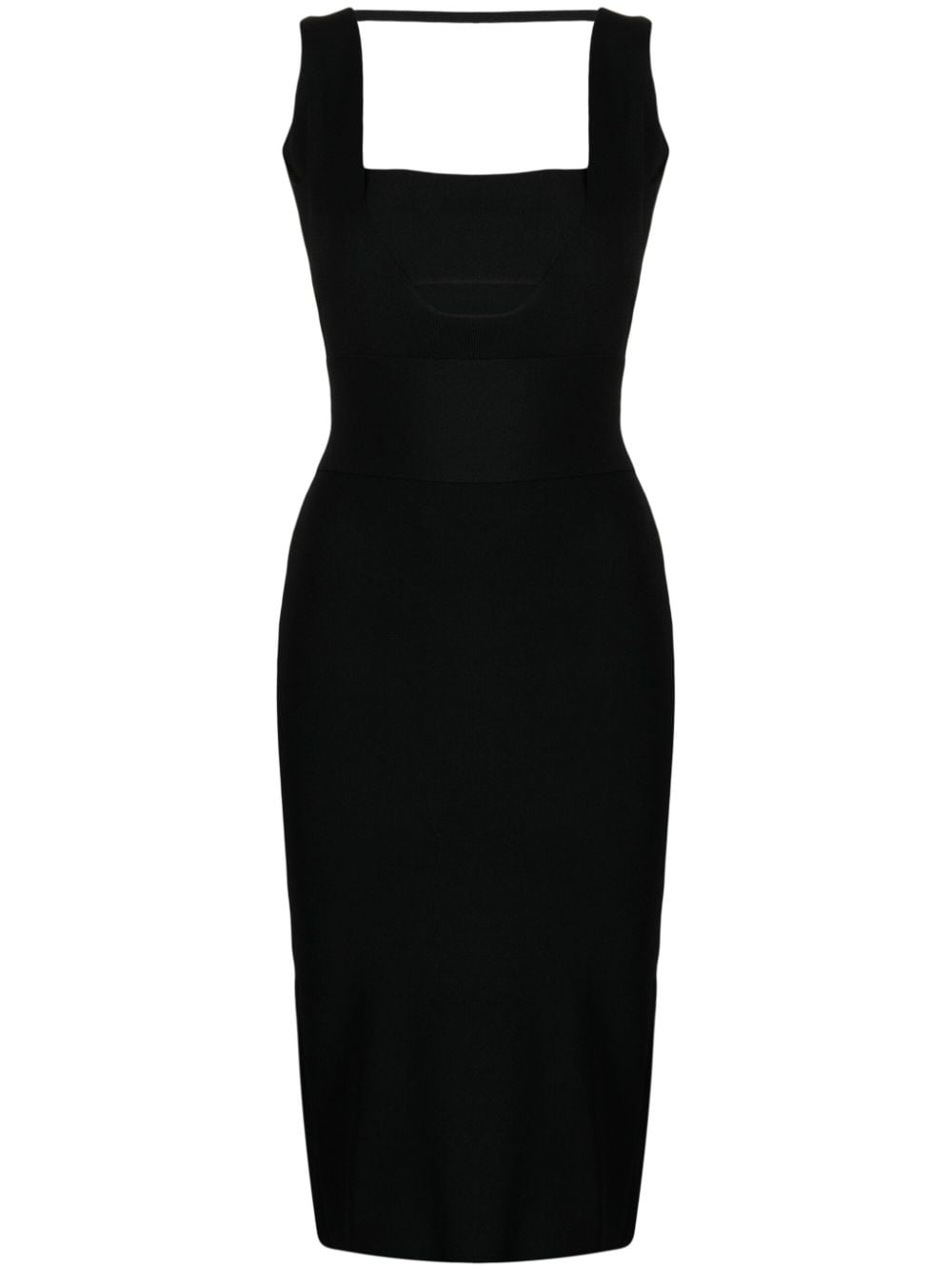 square-neck knitted midi dress black cut-out detailing knitted construction square neck open back rear slit sleeveless knee-length straight hem Made in Italy Composition Outer: Viscose 86%, Polyester 14% SIZE & FIT Model measurements Height 5 ft 9 in(1.76 m) Bust/Chest 31.1 in(79 cm) Hips 35.03 in(89 cm) Waist 24.4 in(62 cm) FittingInformation Designed for a close fit throughout Made with a midweight knit, this piece offers some stretch This piece fits close in all sizes – take your usual size Washing instructions Hand Wash