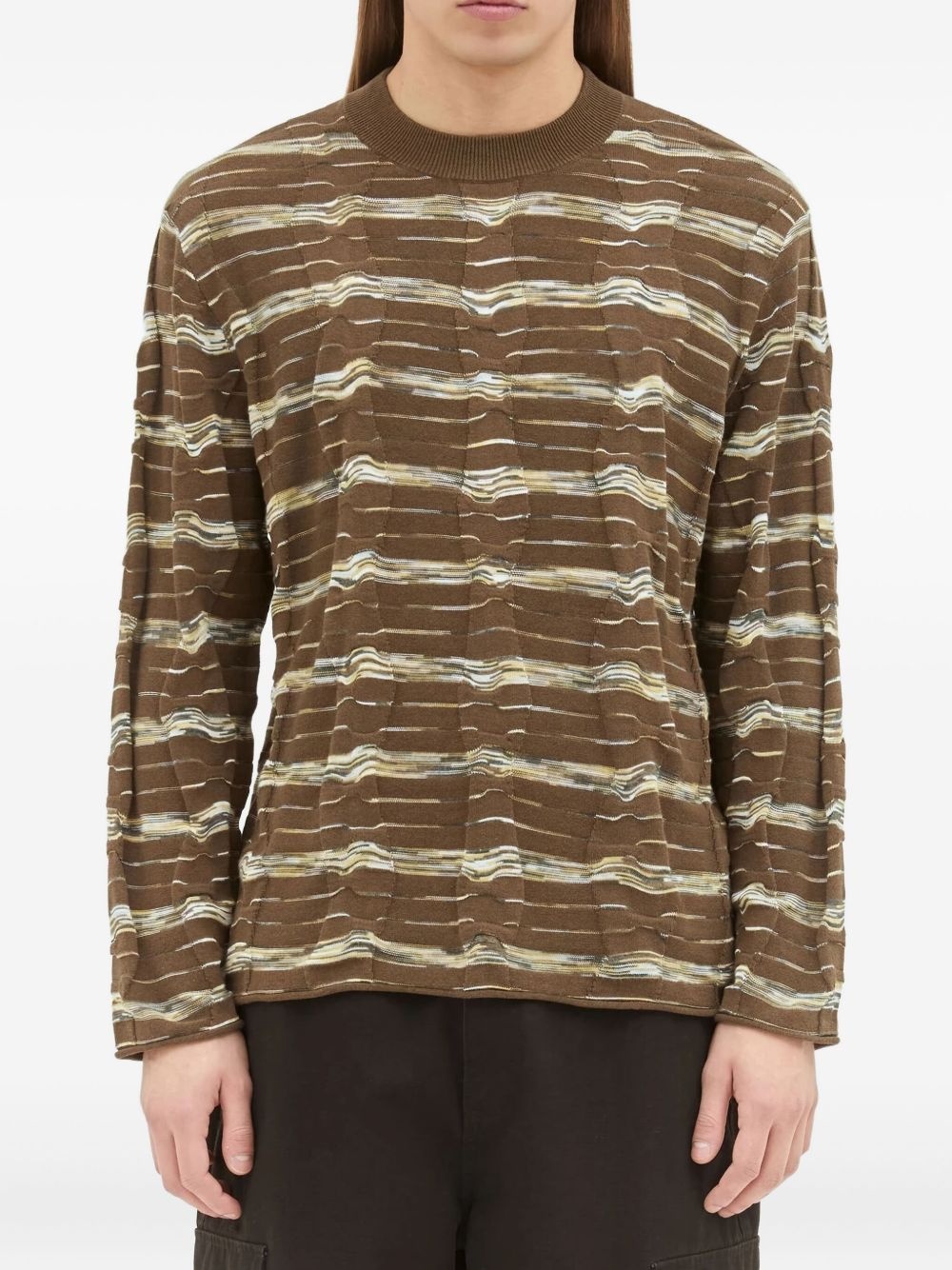 cotton textured sweatshirt Highlights - Brown - Crew neck - Long sleeves - Straight hem - Horizontal stripe pattern Imported Composition Cotton 70%, Viscose 30% Washing instructions Dry Clean Only