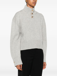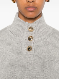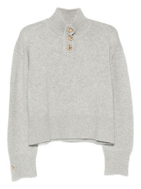 The Rowe high-neck button-front sweater Highlights - Grey - High neck - Short button placket - Long sleeves - Ribbed cuffs - Cropped hem Imported Composition Recycled Cashmere 60%, Cashmere 40% SIZE & FIT Model measurements Height 5 ft 10 in(1.77 m) Bust/Chest 33.07 in(84 cm) Hips 37 in(94 cm) Waist 24.8 in(63 cm) FittingInformation Designed to be unstructured, offering a loose fit throughout Made with a midweight knit, this piece offers some stretch Washing instructions Dry Clean Only
