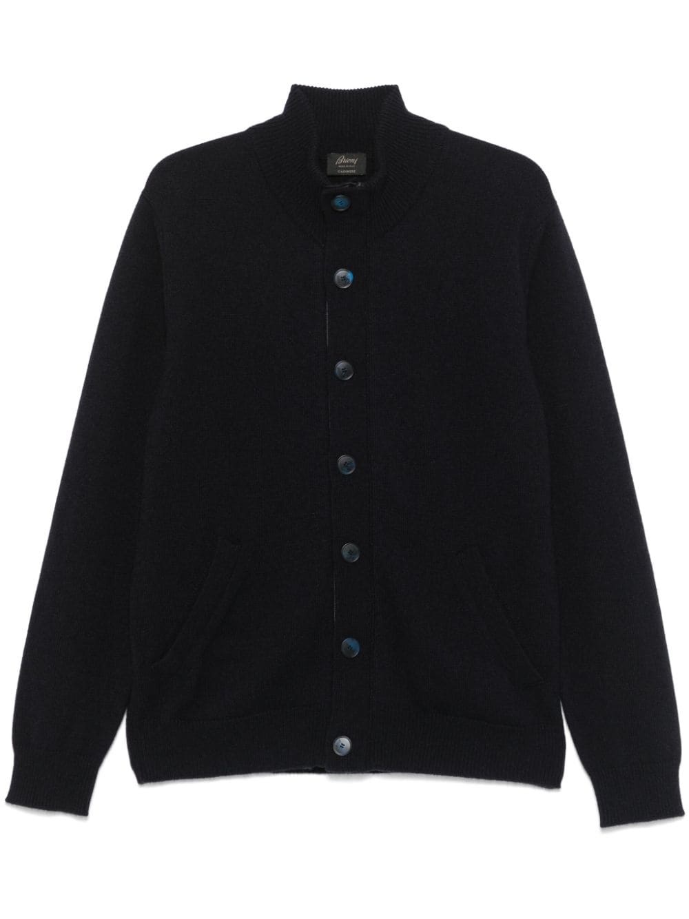 cashmere cardigan Highlights - Navy blue - Cashmere - Knitted construction - Front button and zip fastening - High neck - Long sleeves - Two side welt pockets - Ribbed cuffs and hem Made in Italy Composition Lambskin 100%, Cashmere 100% SIZE & FIT Model measurements Height 6 ft 2 in(1.87 m) Bust/Chest 38.97 in(99 cm) Hips 37.99 in(96.5 cm) Waist 29.52 in(75 cm) FittingInformation Designed for a relaxed fit, this piece allows for comfort and movement when worn The ribbed hem offers a close, comfortable fit Made with a midweight knit, this piece offers some stretch