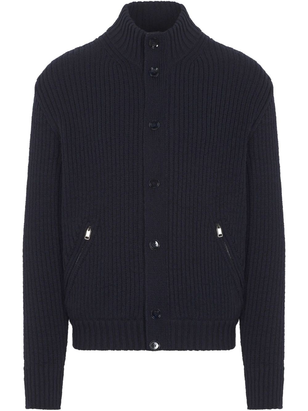 chunky-knit cardigan Highlights - Navy blue - Ribbed knit - Front button and zip fastening - Two zip-fastening pockets Made in Italy Composition Body: Cotton 100% Lambskin 100%