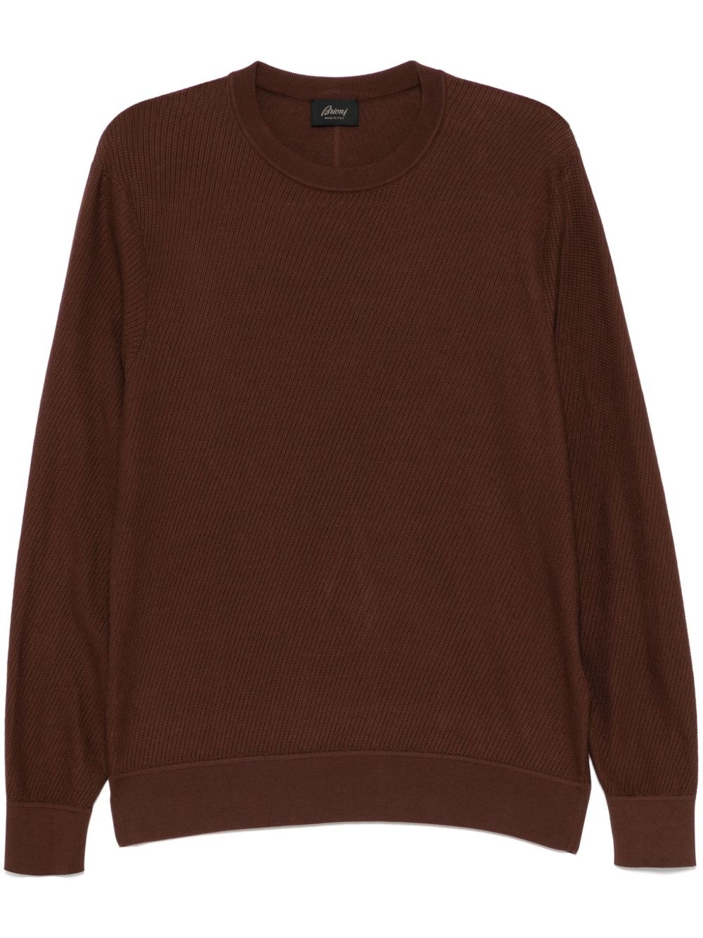 crew-neck jumper Highlights - Rust brown - Crew neck - Ribbed cuffs and hem - Stretch-jersey Made in Italy Composition Cotton 100% SIZE & FIT Model measurements Height 6 ft 2 in(1.88 m) Bust/Chest 34.25 in(87 cm) Hips 34.64 in(88 cm) Waist 26.77 in(68 cm) FittingInformation Designed for a regular fit, offering a comfortable loose fit throughout the body The ribbed hem offers a close, comfortable fit Made with a lightweight knit, this piece offers some stretch