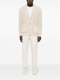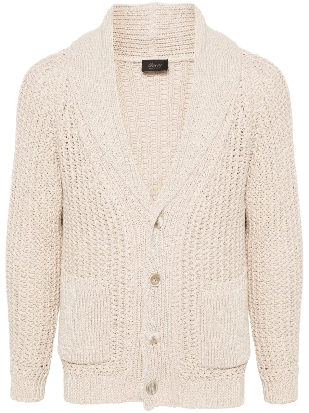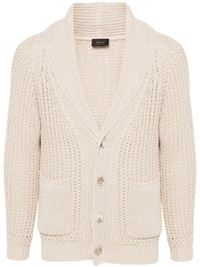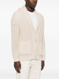 crochet-knit cardigan Highlights - Beige - Cotton-wool blend - Crochet knit - Shawl lapels - Long raglan sleeves - Ribbed cuffs - Two chest patch pockets - Ribbed hem - Unlined - Front button placket Made in Italy Composition Cotton 77%, Wool 23% SIZE & FIT Model measurements Height 6 ft 0 in(1.84 m) Bust/Chest 35.82 in(91 cm) Hips 37 in(94 cm) Waist 28.34 in(72 cm) FittingInformation Designed for a relaxed fit, this piece allows for comfort and movement when worn Made with a midweight knit, this piece offers some stretch This piece fits true to size – take your usual size
