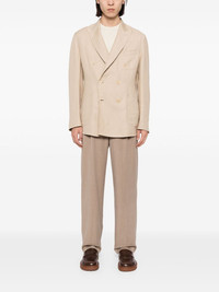 double-breasted linen-blend blazer Highlights - Light beige - Linen-wool-silk blend - Slub texture - Dart detailing - Peak lapels - Double-breasted button fastening - Long sleeves - Buttoned cuffs - Chest welt pocket - Two front patch pockets - Internal patch pocket - English rear vents - Straight hem - Full lining Made in Italy Composition Outer: Linen/Flax 50%, Wool 44%, Silk 6% Lining: Cupro 100% SIZE & FIT Model measurements Height 6 ft 2 in(1.87 m) Bust/Chest 33.07 in(84 cm) Hips 35.43 in(90 cm) Waist 26.77 in(68 cm) FittingInformation Designed for a relaxed fit, this piece allows for comfort and movement when worn The vented hem offers movement at the rear Made from a midweight non-stretch fabric This piece fits true to size – take your usual size