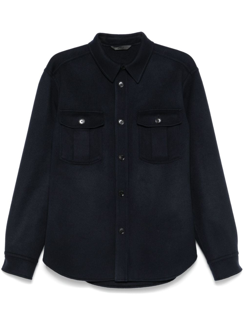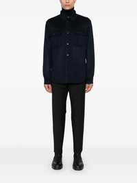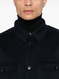 felted shirt jacket Highlights - Midnight blue - Wool-cashmere blend - Felted finish - Front button fastening - Classic collar - Long sleeves - Buttoned cuffs - Two button-fastening chest pockets - Curved hem Made in Italy Composition Outer: Wool 70%, Cashmere 30% Lining: Cotton 100% SIZE & FIT Model measurements Height 6 ft 1 in(1.85 m) Bust/Chest 35.82 in(91 cm) Hips 37.79 in(96 cm) Waist 29.13 in(74 cm) FittingInformation Designed for a relaxed fit, this piece allows for comfort and movement when worn Made from a midweight non-stretch fabric, this piece offers minimal elasticity when worn