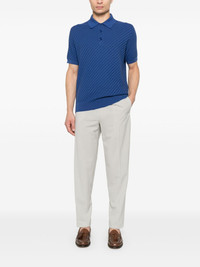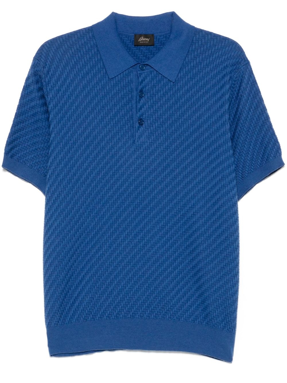 herringbone polo shirt Highlights - Royal blue - Front button placket - Ribbed cuffs and hem - Polo collar - Short sleeves Made in Italy Composition Cotton 57%, Silk 34%, Cashmere 9% SIZE & FIT Model measurements Height 6 ft 1 in(1.85 m) Bust/Chest 35.82 in(91 cm) Hips 37.79 in(96 cm) Waist 29.13 in(74 cm) FittingInformation Designed for a relaxed fit, this polo shirt offers comfort and movement The ribbed hem offers a close, comfortable fit Made with a midweight knit, this piece offers some stretch