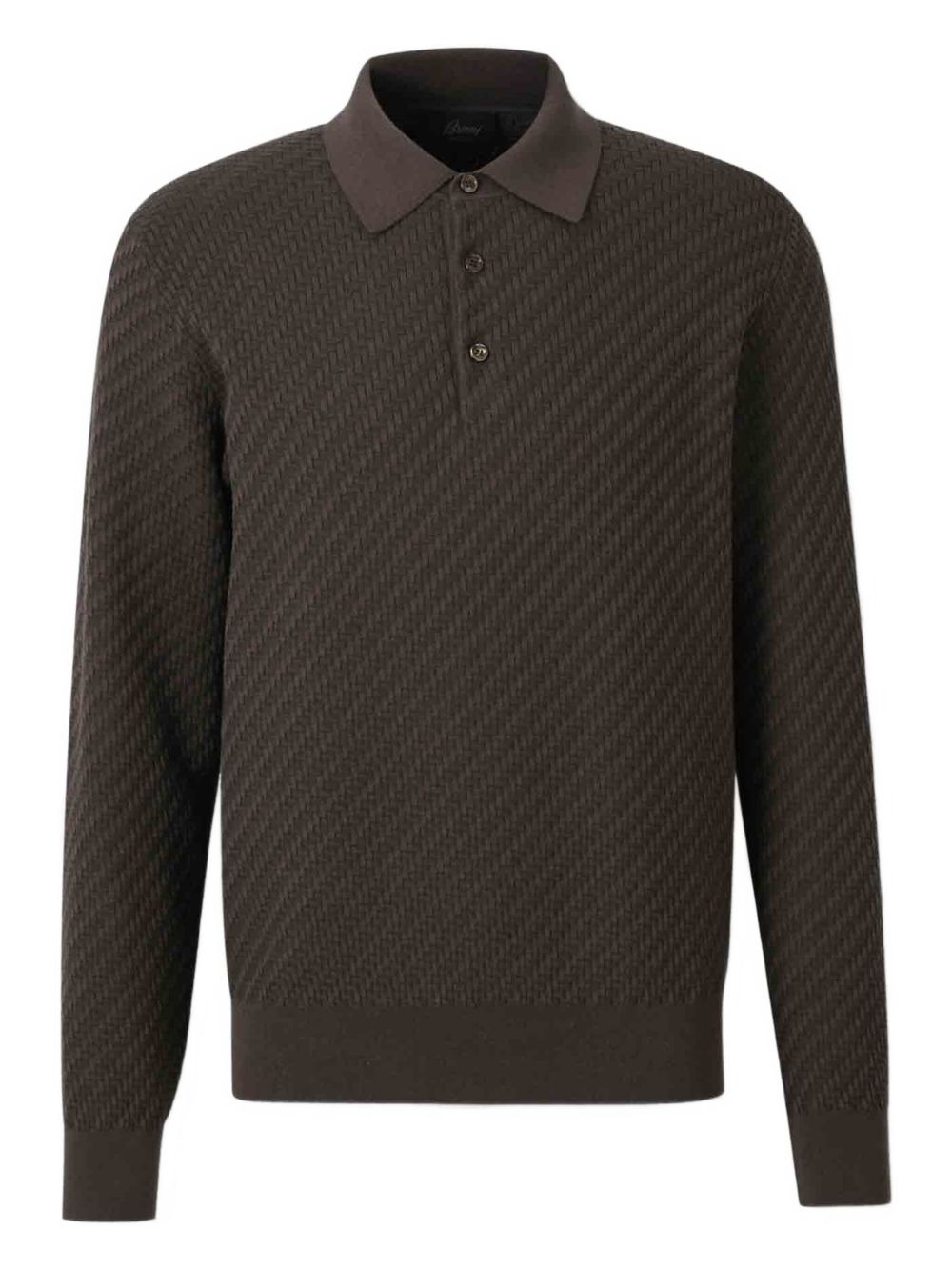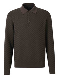 interwoven polo jumper Highlights - Dark brown - Polo collar - Interwoven knit - Button placket fastening - Long sleeves - Ribbed cuffs Made in Italy Composition Cotton 57%, Silk 34%, Cashmere 9% Washing instructions Dry Clean Only