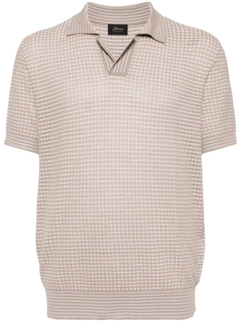 knitted polo shirt Highlights - Taupe brown - Polo collar - Lightweight - Ribbed cuffs and hem Made in Italy Composition Silk 53%, Cotton 47%