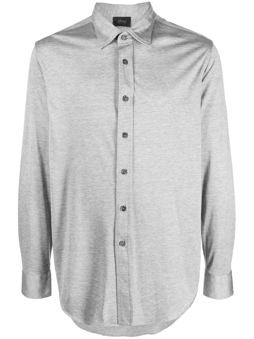 melange-effect button shirt Highlights - Light grey - Silk-cotton blend - Melange effect - Classic collar - Front button fastening - Long sleeves - Buttoned cuffs - Straight hem Made in Italy Composition Silk 60%, Cotton 40% SIZE & FIT Model measurements Height 6 ft 2 in(1.87 m) Bust/Chest 38.18 in(97 cm) Hips 36.61 in(93 cm) Waist 29.13 in(74 cm) FittingInformation Designed for a relaxed fit, this piece allows for comfort and movement when worn Made from a midweight non-stretch fabric, this piece offers minimal elasticity when worn This piece fits true to size – take your usual size Washing instructions Hand Wash