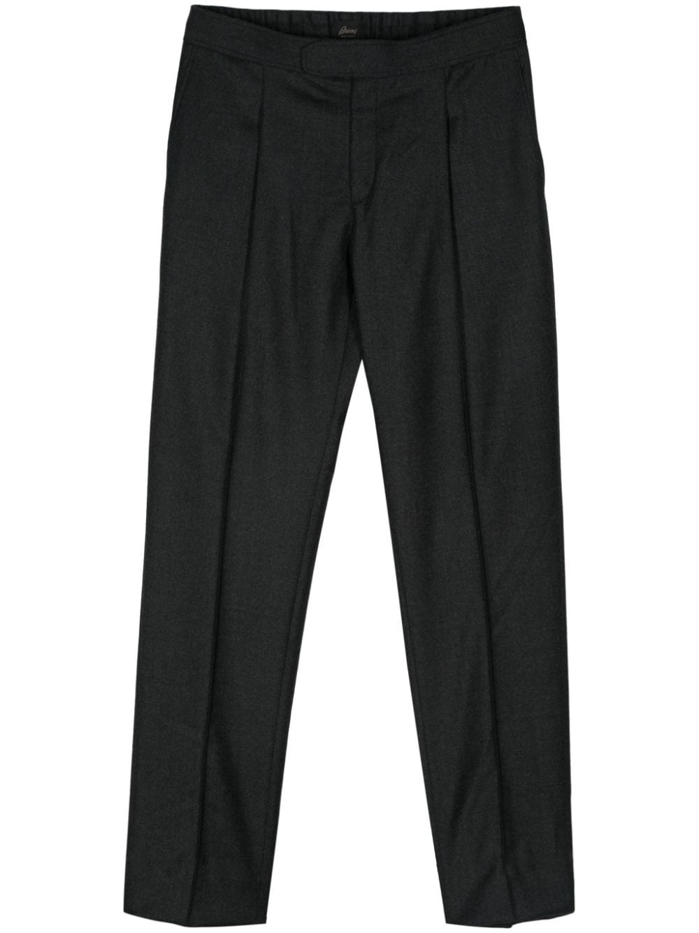 Melbourne trousers Highlights - Anthracite grey - Wool - Melange effect - Elasticated waistband with internal drawstring - Pleat detailing - Pressed crease - Two diagonal pockets to the sides - Two rear button-fastening jetted pockets - Straight leg - Concealed front button, hook and zip fastening Made in Italy Composition Lining: Cotton 50%, Modal 50% Outer: Wool 100%, Leather 100% Washing instructions Dry Clean Only