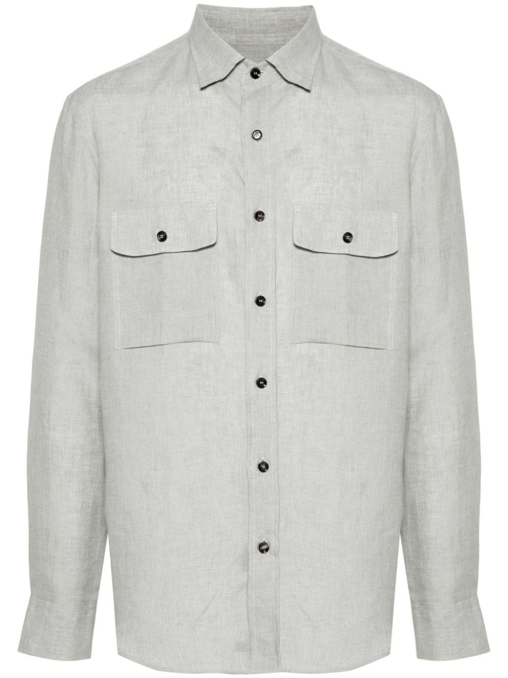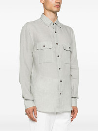 Military shirt Highlights - Military green - Linen/flax - Locker loop - Inverted pleat - Classic collar - Front button fastening - Long sleeves - Buttoned cuffs - Curved hem - Two chest flap pockets Made in Italy Composition Linen/Flax 100% SIZE & FIT Model measurements Height 6 ft 1 in(1.86 m) Bust/Chest 37.4 in(95 cm) Hips 36.22 in(92 cm) Waist 29.52 in(75 cm) FittingInformation Designed for a regular fit, allowing for a comfortably loose fit throughout the body Made from a midweight non-stretch fabric This piece fits true to size – take your usual size