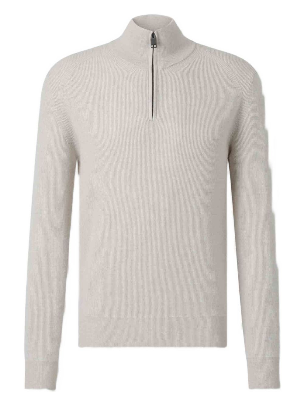 ribbed zip-neck sweater Highlights - Beige - Ribbed texture - Quarter zip fastening - High neck - Long sleeves - Straight hem Made in Italy Composition Silk 52%, Cotton 48% Washing instructions Read Manufacturer Guidelines
