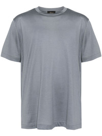 round-neck T-shirt Highlights - Cloud blue - Cotton/silk - Crew neck - Short sleeves - Straight hem - Lightweight Made in Italy Composition Silk 55%, Cotton 45% SIZE & FIT Model measurements Height 6 ft 2 in(1.88 m) Bust/Chest 34.25 in(87 cm) Hips 34.64 in(88 cm) Waist 26.77 in(68 cm) FittingInformation Designed for a regular fit allowing for a comfortably loose fit throughout the body Made from a lightweight non-stretch fabric, this piece offers minimal elasticity when worn