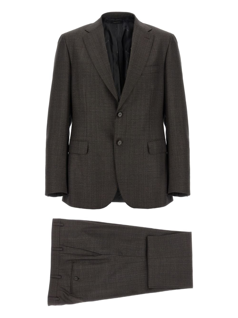 single-breasted flat-front suit Highlights - Brown - Wool fabric - Notched lapels - Button closure - Flap pockets - Back welt pockets Made in Italy Composition Wool 100% Washing instructions Read Manufacturer Guidelines