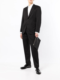 single-breasted wool blazer black wool peak lapels chest welt pocket front button fastening two front flap pockets long sleeves buttoned cuffs English rear vents straight hem Made in Italy Composition Wool 100%, Cupro 100% SIZE & FIT Model measurements Height 6 ft 2 in(1.87 m) Bust/Chest 34.25 in(87 cm) Hips 36.22 in(92 cm) Waist 29.52 in(75 cm) FittingInformation This piece fits true to size. We recommend you get your regular size Cut for a slim fit Made with a mid-weight non-stretch fabric Washing instructions Dry Clean Only