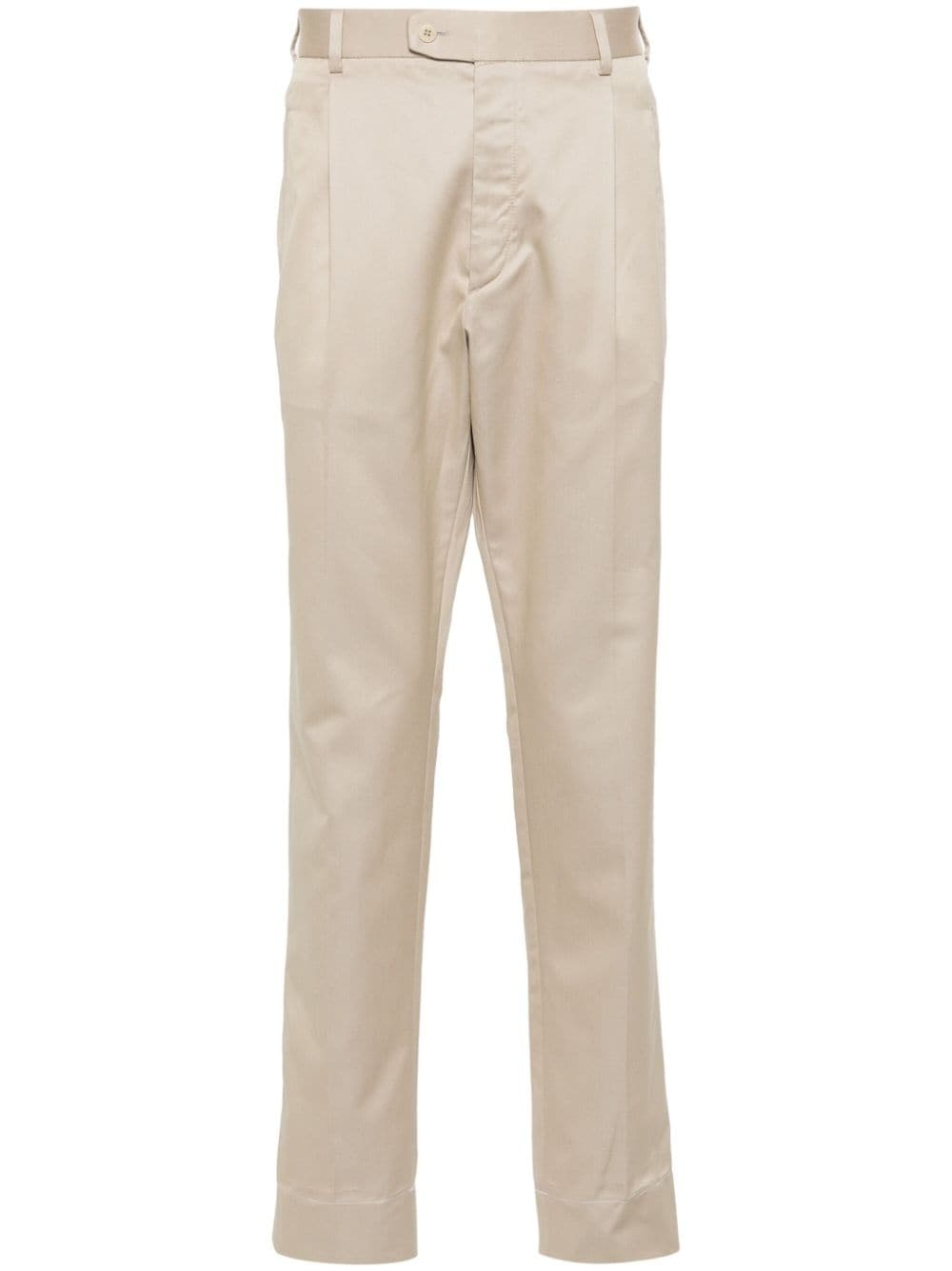 slim-fit cotton tailored trousers Highlights - Beige - Cotton - Hook and zip fly fastening - Belt loops - Two front welt pockets - Pleat detailing - Rear button-fastening jetted pocket - Pressed crease - Tailored cut Made in Italy Composition Lining: Modal 50%, Cotton 50% Outer: Cotton 100% SIZE & FIT Model measurements Height 6 ft 2 in(1.89 m) Bust/Chest 37.79 in(96 cm) Hips 37 in(94 cm) Waist 29.92 in(76 cm) FittingInformation Designed for a slim fit, offering a comfortable fit that sits just away from the leg The partially elasticated waistband offers increased movement and comfort at the waist Made from a midweight non-stretch fabric This piece fits true to size – take your usual size