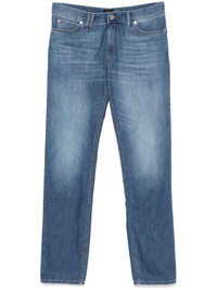 slim-fit jeans Highlights - Blue - Cotton - Washed denim - Concealed fly and button fastening - Belt loops - Mid-rise - Classic five pockets - Whiskering effect at the thighs - Silver-tone logo plaque - Logo patch to the rear - Slim cut - Tapered leg Made in Italy Composition Lining: Polyester 65%, Cotton 35% Outer: Cotton 100%