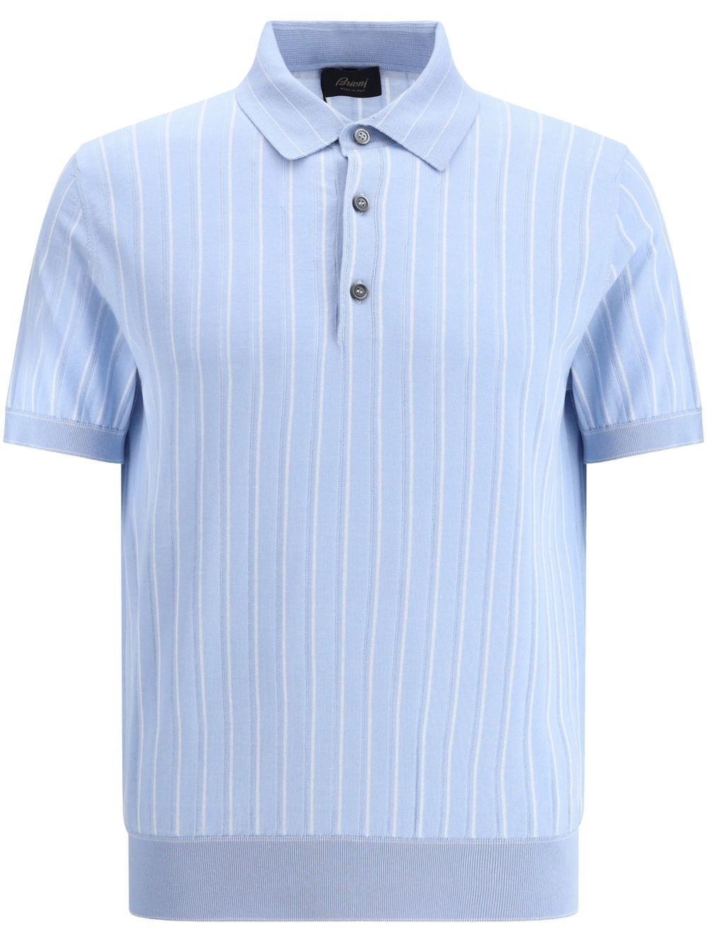Trama polo shirt Highlights - Baby blue - Short front button fastening - Ribbed cuffs and hem - Short sleeves Made in Italy Composition Cotton 57%, Silk 34%, Linen/Flax 9%