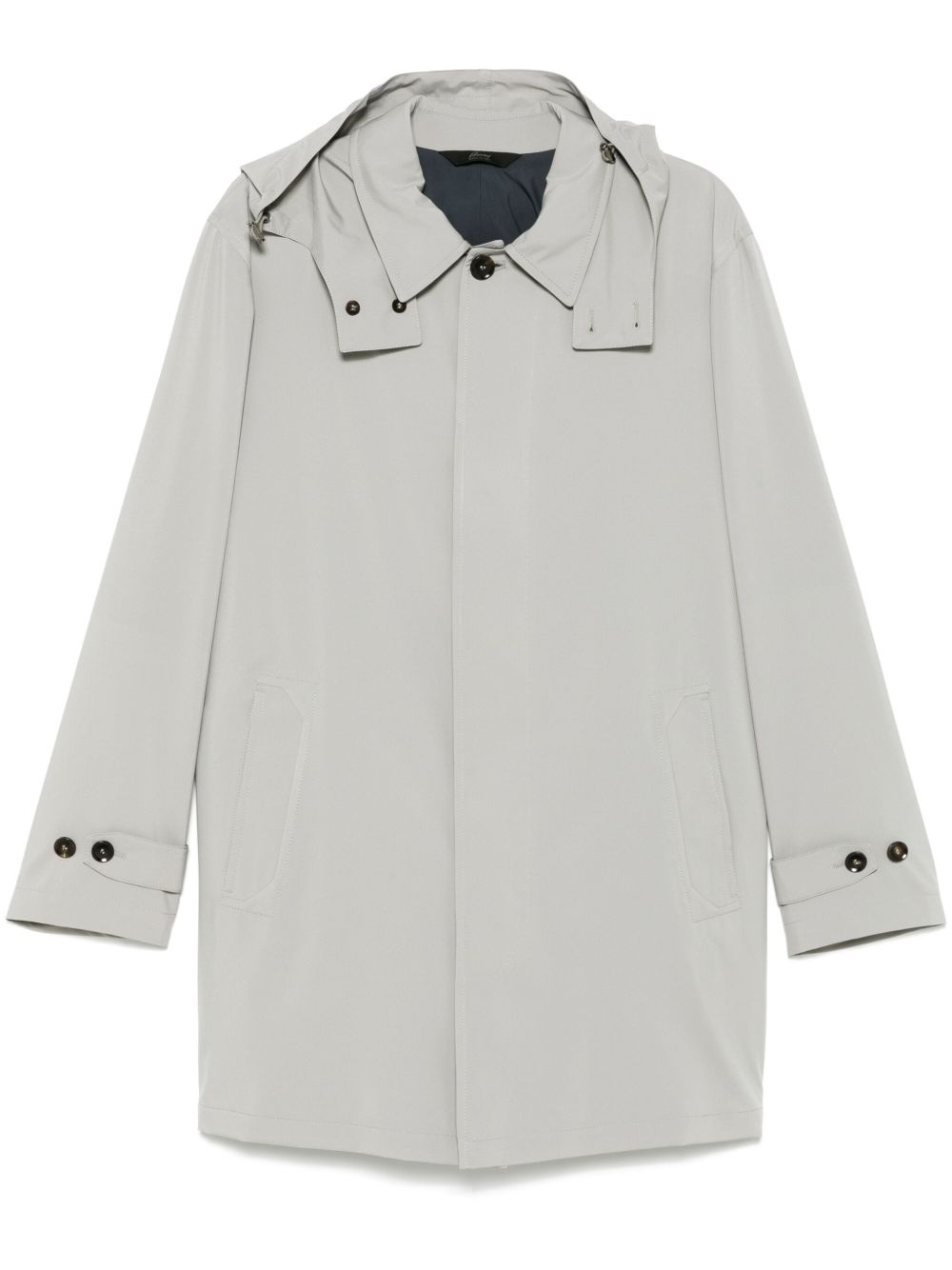 trench coat parka Highlights - Ash grey - Concealed front button fastening - Drawstring hood - Two side welt pockets Made in Italy Composition Outer: Polyester 100% Lining: Polyester 100%, Cotton 100% SIZE & FIT Model measurements Height 6 ft 1 in(1.85 m) Bust/Chest 35.82 in(91 cm) Hips 37.79 in(96 cm) Waist 29.13 in(74 cm) FittingInformation Designed to be unstructured, offering a loose fit throughout Made from a lightweight fabric