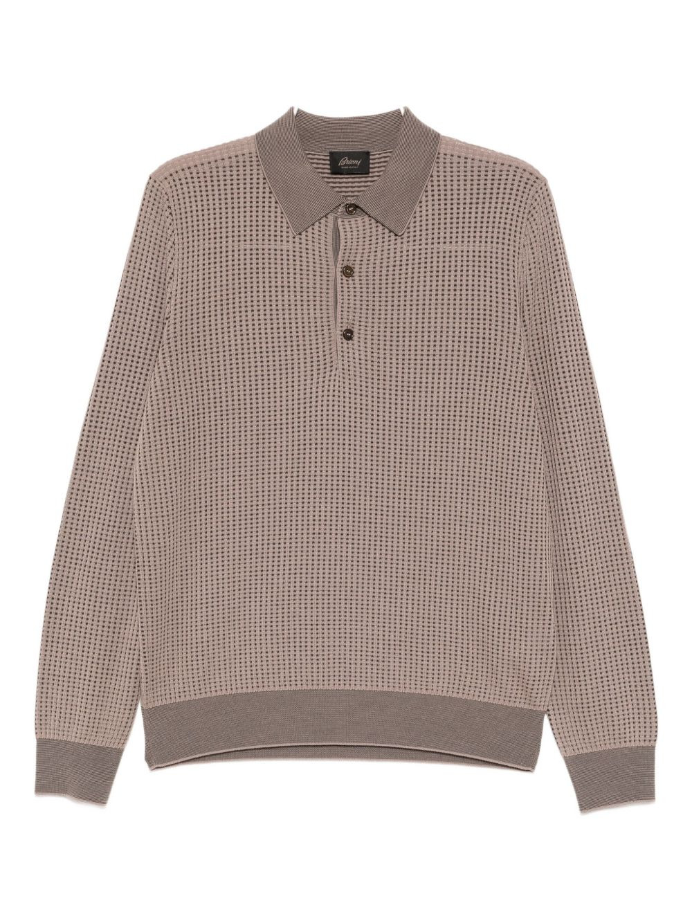 waffle-knit polo shirt Highlights - Light brown - Front button fastening - Long sleeves - Ribbed cuffs and hem Made in Italy Composition Wool 80%, Silk 20% SIZE & FIT Model measurements Height 6 ft 2 in(1.88 m) Bust/Chest 33.46 in(85 cm) Hips 36.22 in(92 cm) Waist 27.55 in(70 cm) FittingInformation Designed for a regular fit, this polo shirt offers a comfortable loose fit throughout the body The ribbed hem offers a close, comfortable fit Made with a lightweight knit, this piece offers some stretch Washing instructions Dry Clean Only