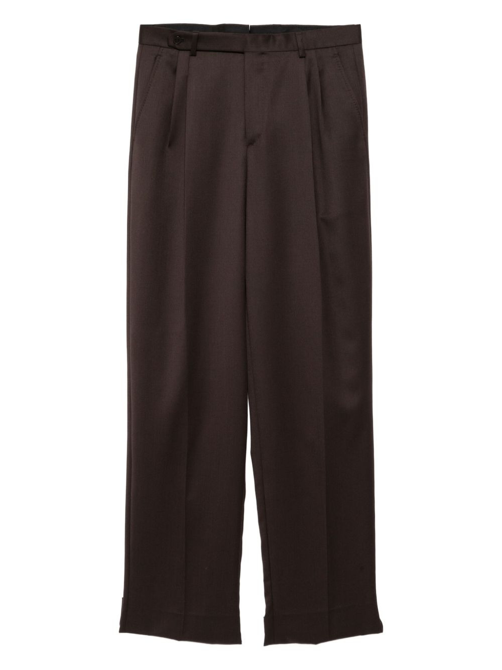 wool trousers Highlights - Cedar brown - Front button and zip fastening - Two side slash pockets - Two rear welt pockets - Detachable adjustable waist strap Made in Italy Composition Outer: Wool 100% Lining: Cupro 100% SIZE & FIT Model measurements Height 6 ft 2 in(1.88 m) Bust/Chest 33.46 in(85 cm) Hips 36.22 in(92 cm) Waist 27.55 in(70 cm) FittingInformation Designed for a straight-leg, allowing for an unrestricted and comfortable fit over the leg The unfinished hems allow for the length to be altered Made from a midweight non-stretch fabric Washing instructions Dry Clean Only