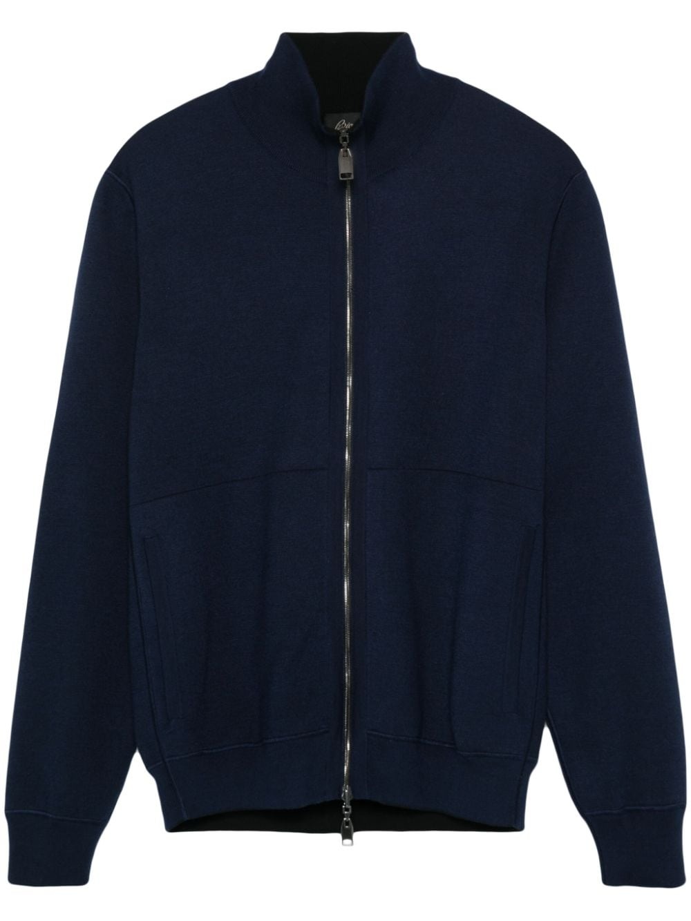 zip-up cardigan Highlights - Midnight blue - Knitted construction - Front two-way zip fastening - Stand-up collar - Two side welt pockets - Long sleeves - Ribbed cuffs and hem Made in Italy Composition Cotton 42%, Cashmere 35%, Silk 15%, Polyamide 6%, Elastane 2% SIZE & FIT Model measurements Height 6 ft 1 in(1.85 m) Bust/Chest 35.82 in(91 cm) Hips 37.79 in(96 cm) Waist 29.13 in(74 cm) FittingInformation Designed for a slim fit, offering a comfortable fit that sits just away from the body The ribbed hem offers a close, comfortable fit Made from a midweight non-stretch fabric, this piece offers minimal elasticity when worn